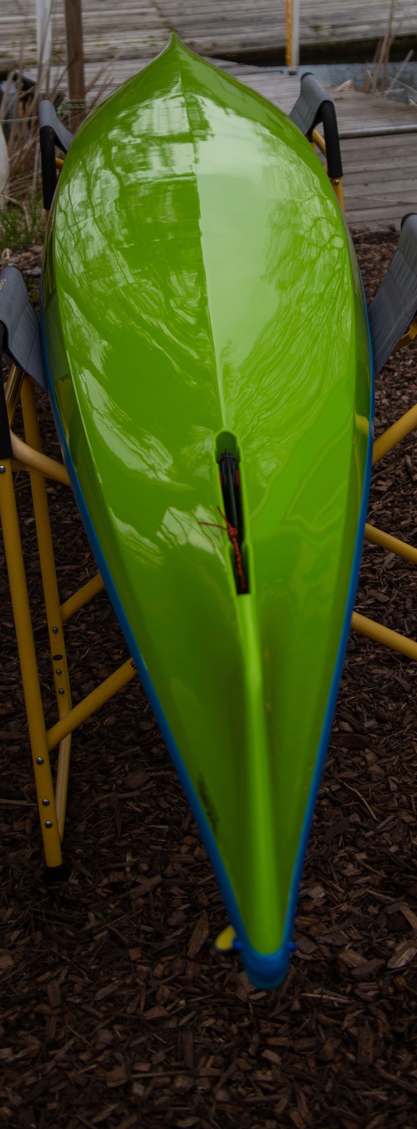 - A low, ergonomically shaped rear deck allows easy rolling and re-entry, with a paddle shaft recess for bracing during entry.
