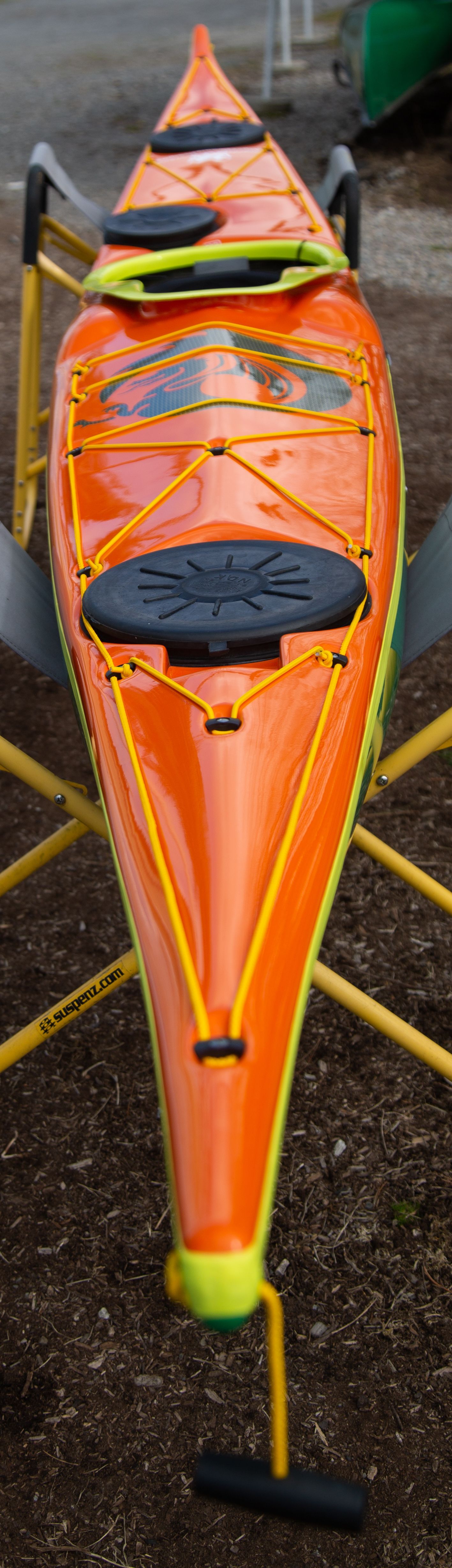 It has extended knee bumps so the lighter paddler can move the seat forwards, or the taller paddler has enough room for their knees.