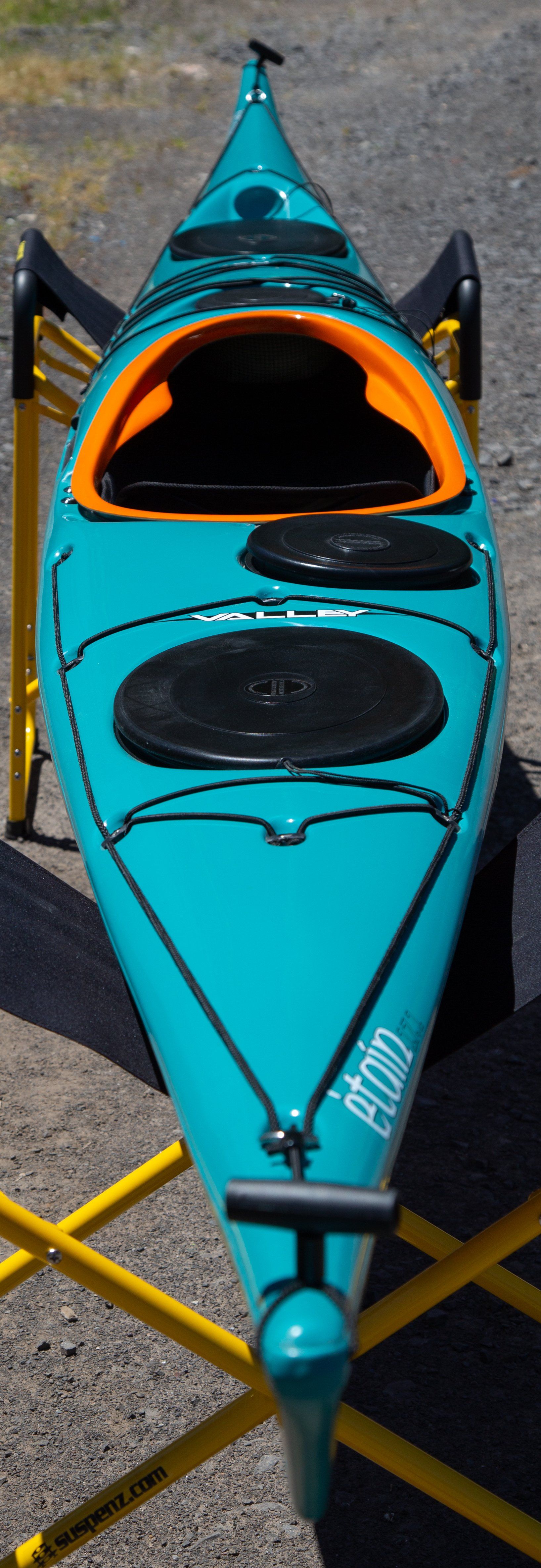 The Etain is a conscious departure from previous Valley designs. Valley kayaks were traditionally more “fish-form” i.e. widest point slightly forward of centre. The Etain is more neutral, in fact very slightly Swede form i.e. widest point rear of centre. Swede form kayaks have a different feel, slightly more glide and a perception of speed that is more noticeable because you are now paddling in a narrower part of the boat. The paddling stroke is also less encumbered and there is a general feeling of having less boat between you and the water. Better…NO, different… YES!
